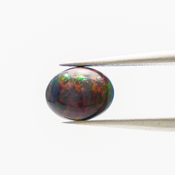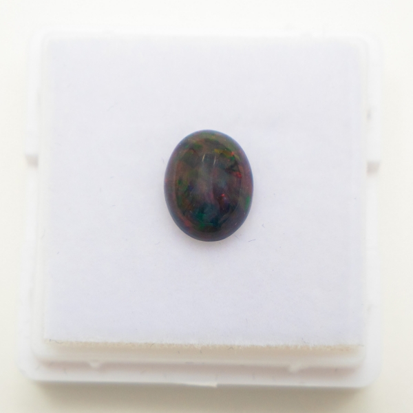こちらはオーストラリア産の天然ブラックオパールルース。サイズは約7×9mmと、ジュエリー加工にちょうど良い取り回しやすい大きさです。