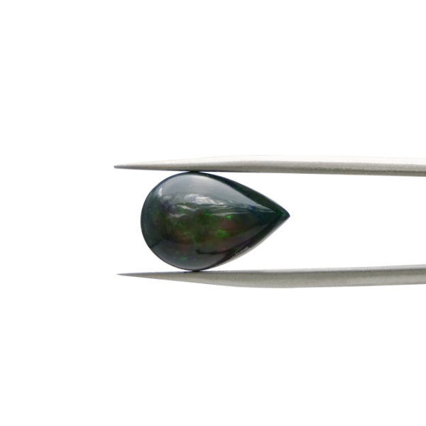 こちらは3.75カラットの大粒ブラックオパールに、気品あふれる**ペアシェイプ(しずく型)**カットを施した、唯一無二の天然ルースです。