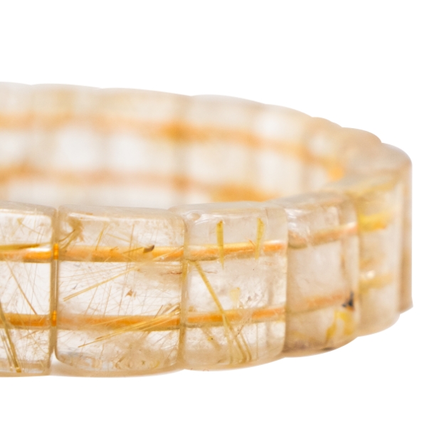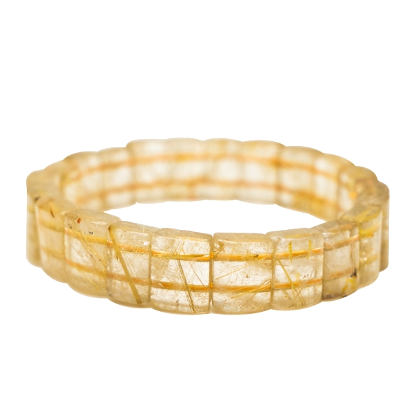 透明度の高い水晶に、金色のルチル(針状鉱物)が美しく内包された、存在感抜群のルチルクォーツバングルブレスレットです。