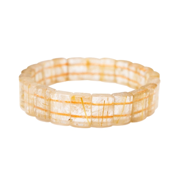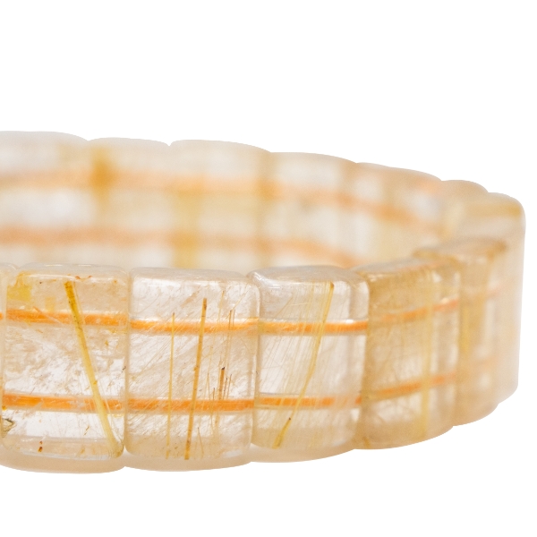 透明度の高い水晶に、金色のルチル(針状鉱物)が美しく内包された、存在感抜群のルチルクォーツバングルブレスレットです。